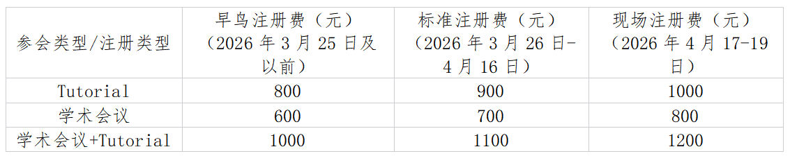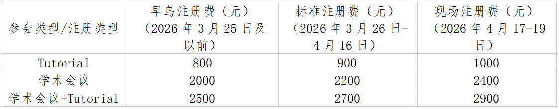 本届大会将按照以下标准收取注册费,请前往会议官网进行注册缴费。