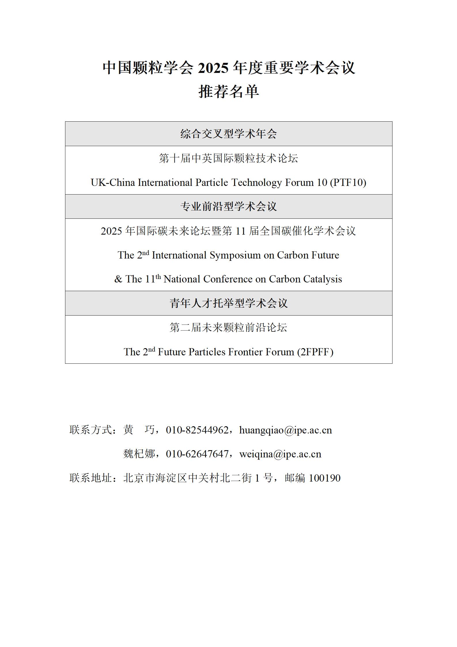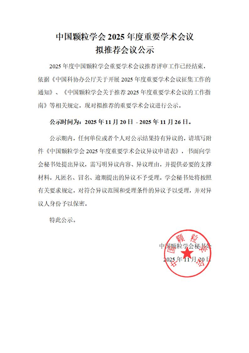 中国颗粒学会2025年度重要学术会议拟推荐会议公示