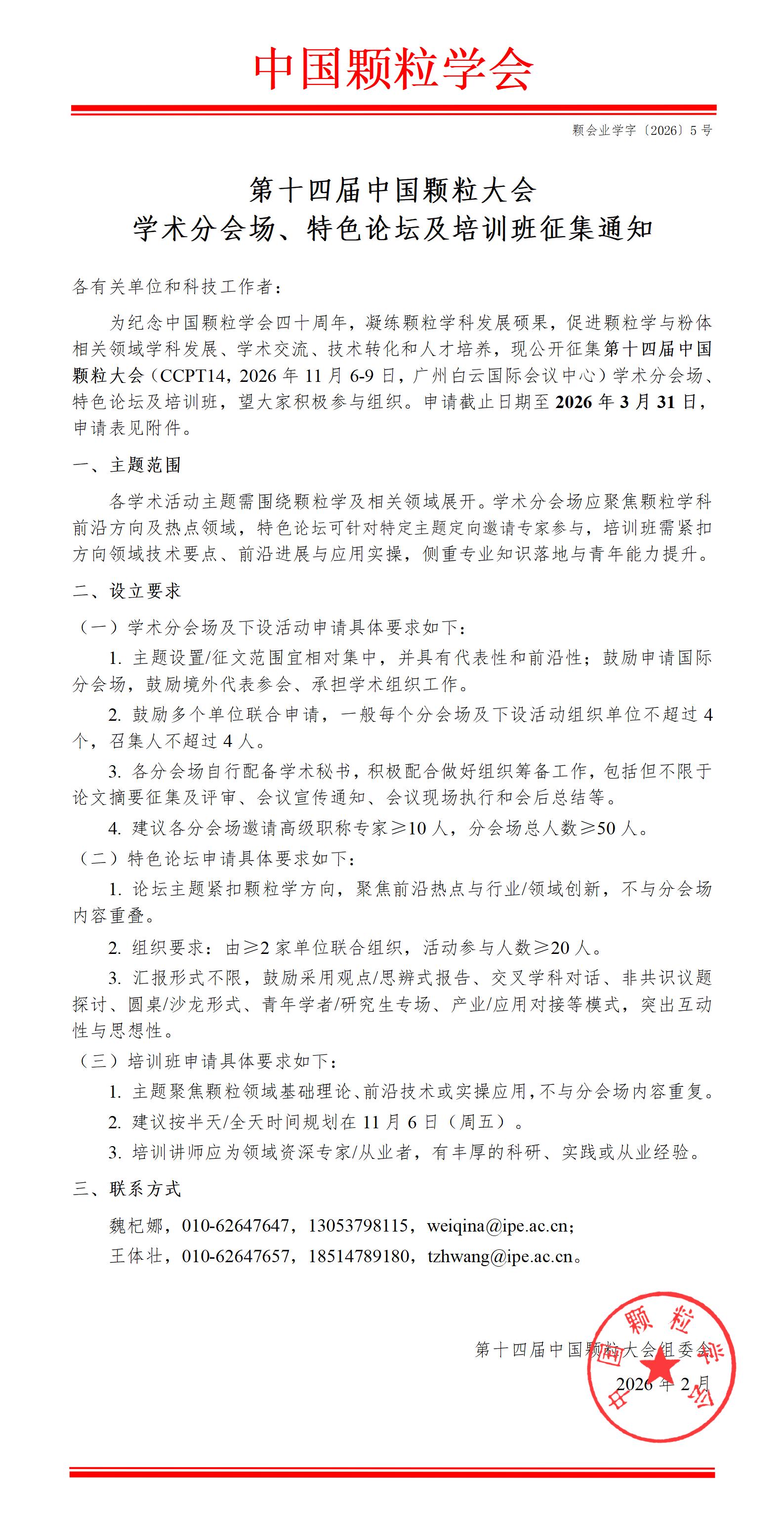 第十四届中国颗粒大会(第一轮通知)